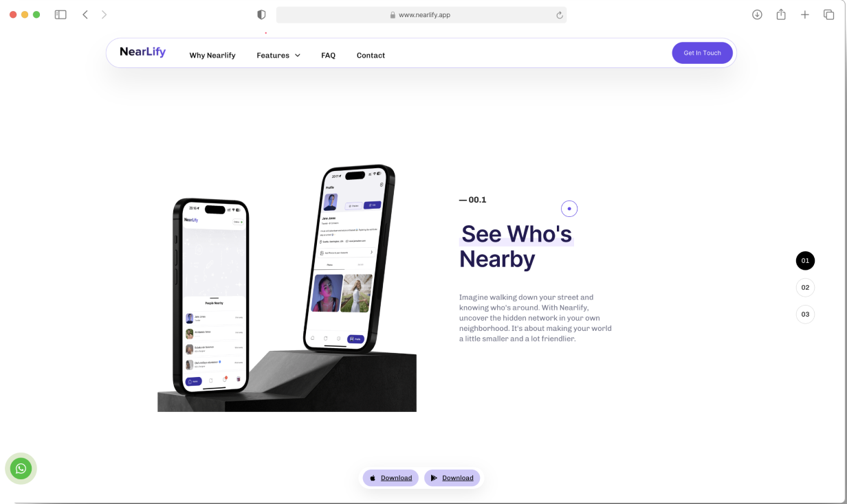 Nearlify needed a captivating and informative landing page to attract new users and encourage sign-ups. The main challenges included: • Creating a visually appealing and user-friendly design that clearly communicates Nearlify's unique value proposition. • Enhancing user engagement through clear calls-to-action and detailed feature descriptions.